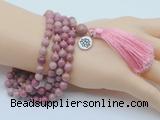 Warning: mysqli_select_db() expects parameter 1 to be mysqli, boolean given in /home/wwwbesol/public_html/includes/classes/seo_mysqli.class.php on line 175 GMN1768 Knotted 8mm, 10mm pink fossil jasper 108 beads mala necklace with tassel & charm